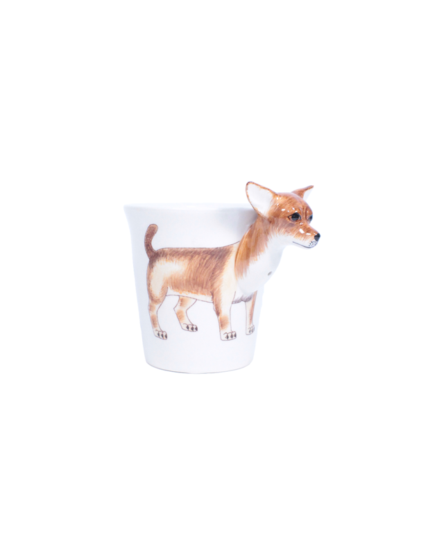 チワワのマグカップです。 頭部が取っ手になり、突き出しています。 size : W133*D90*H94mm