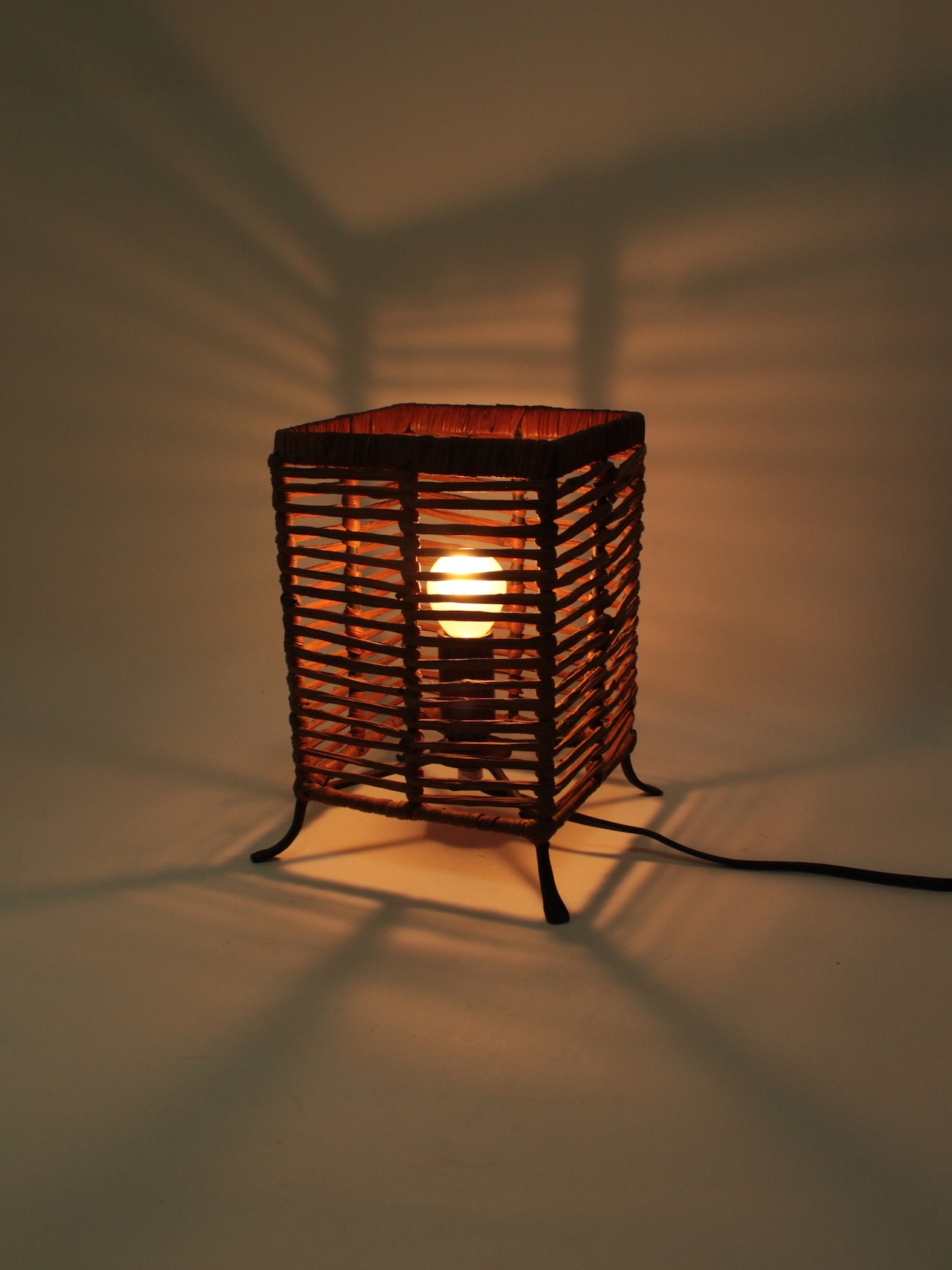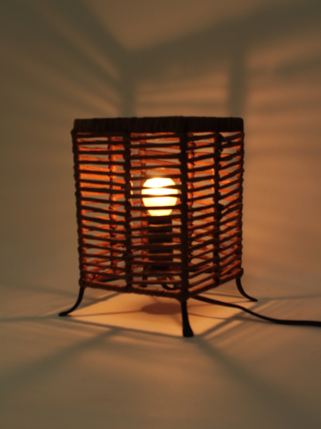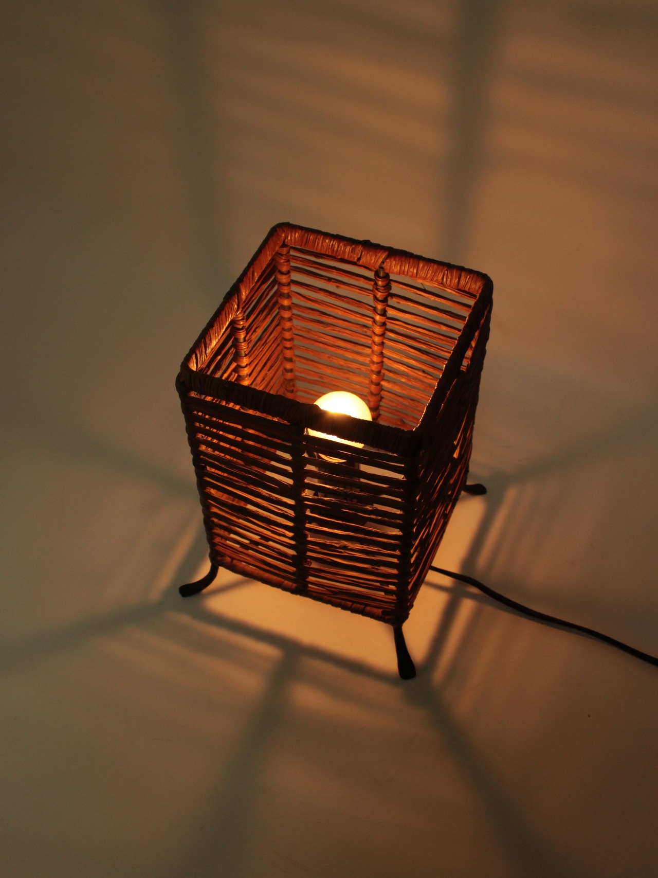蔓植物でできた四角いシェードのライト。