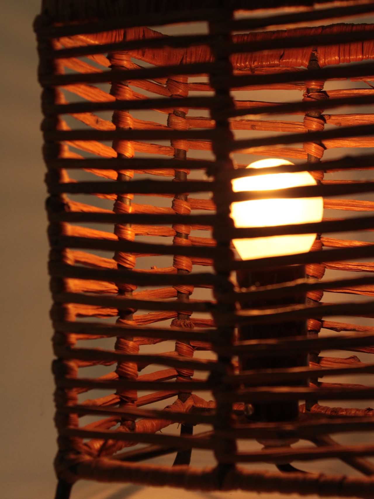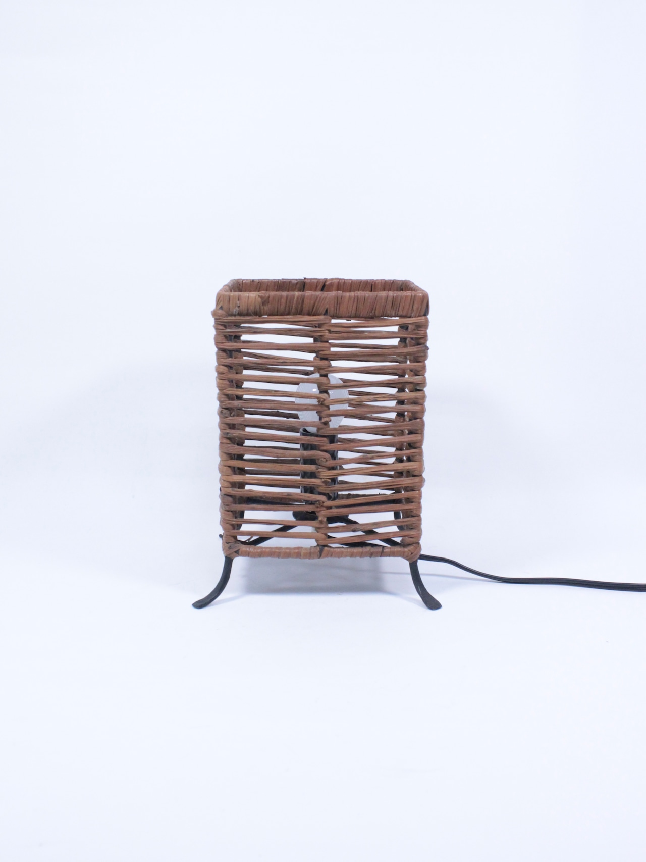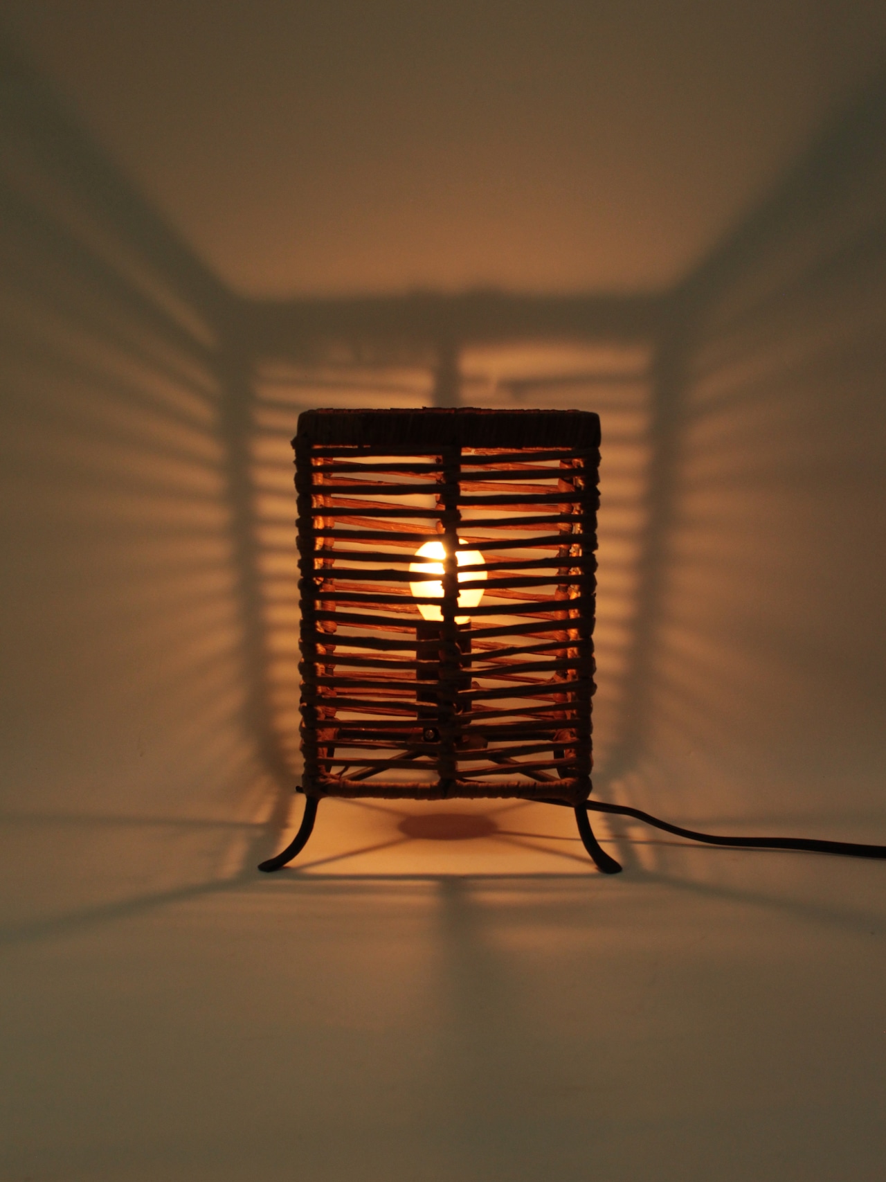 蔓植物でできた四角いシェードのライト。