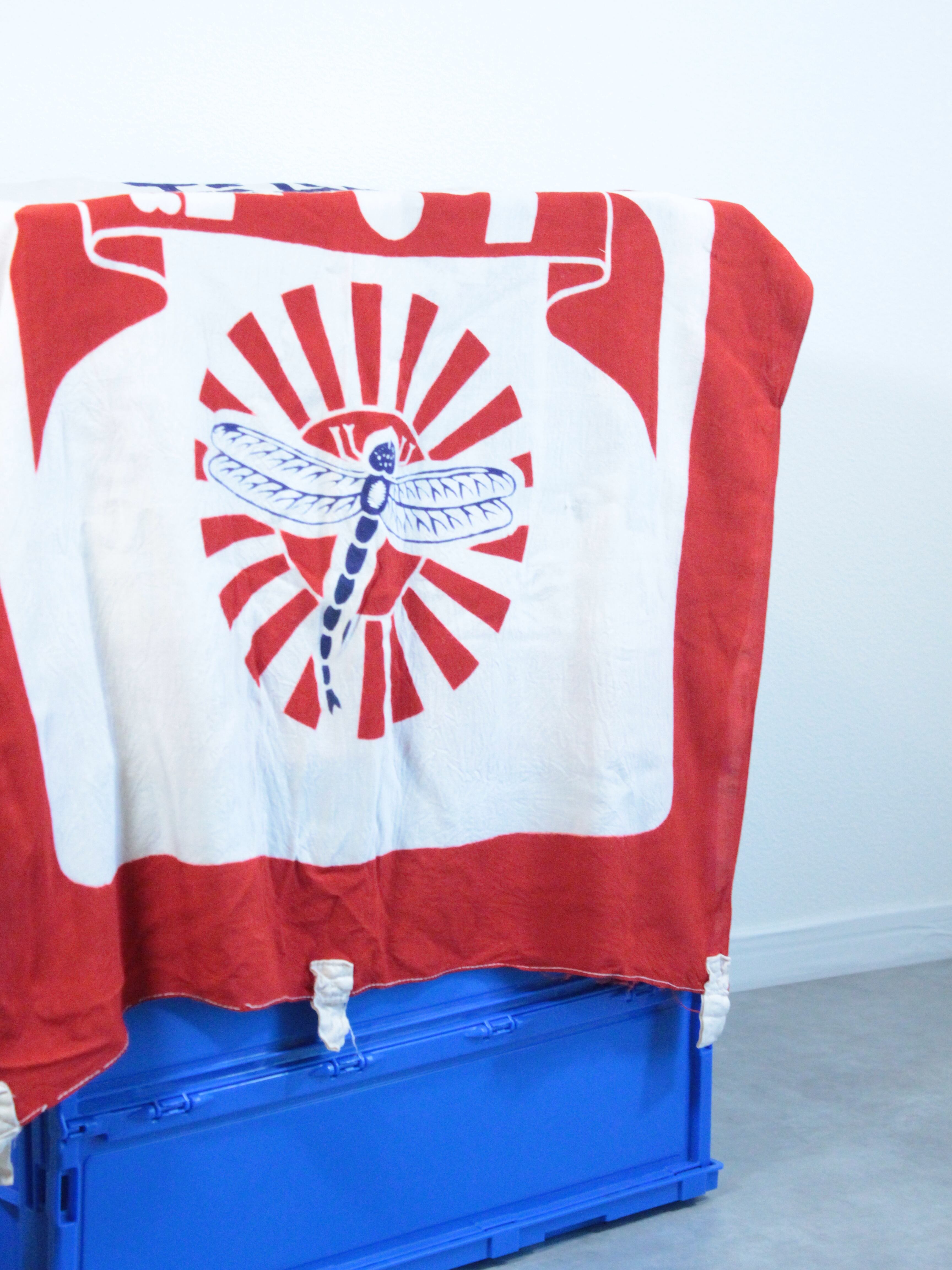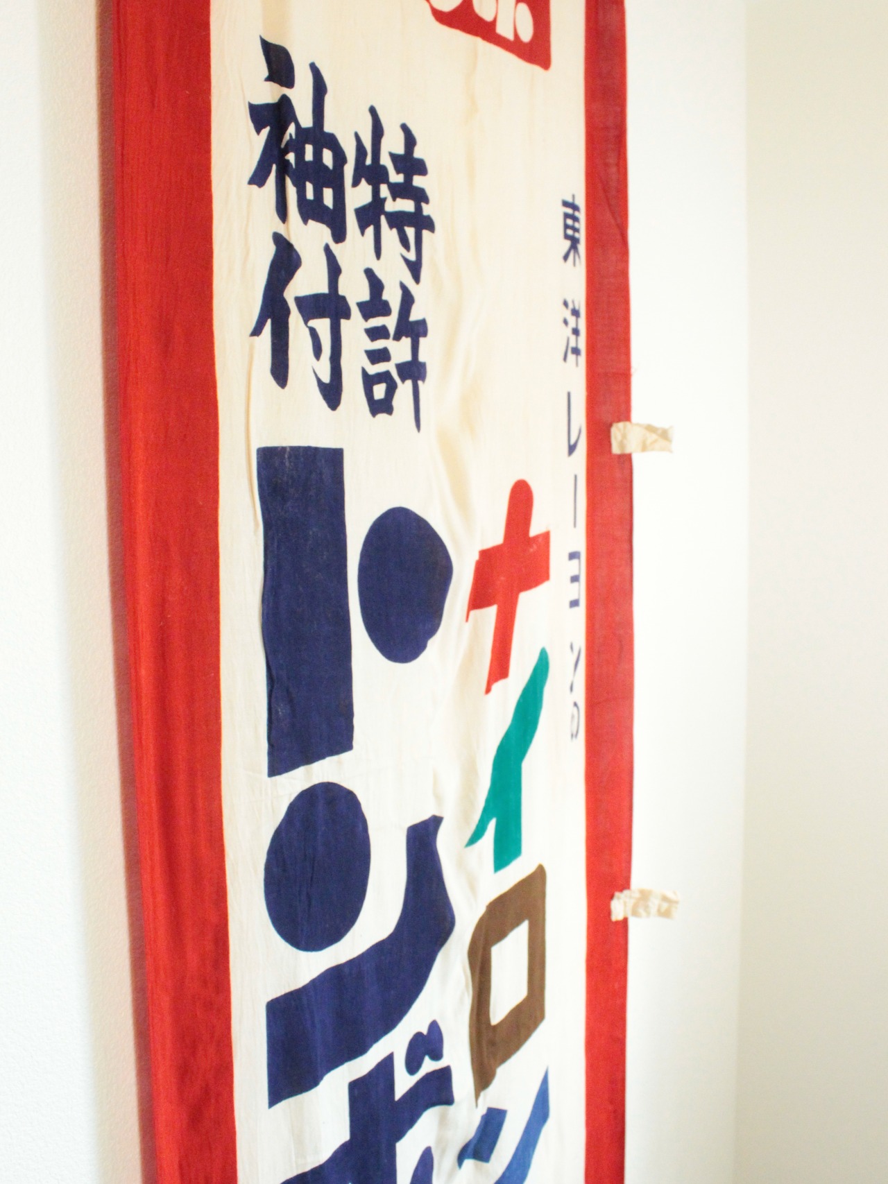 It bears the words “Toyo Rayon”, and from the texture, the flag itself also seems to be made of rayon.