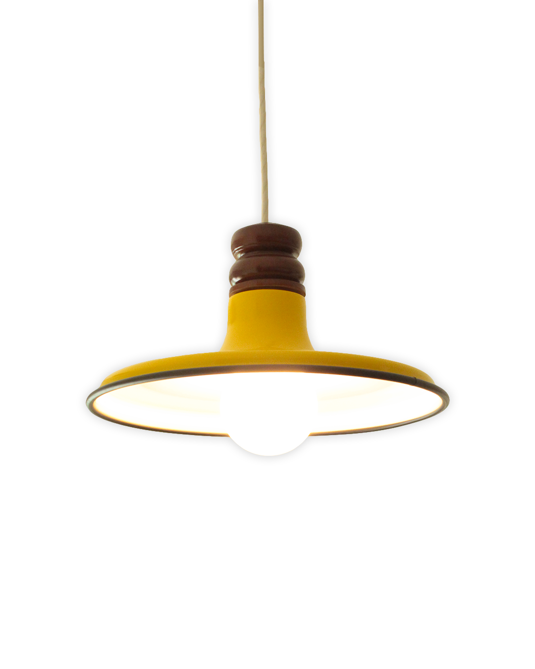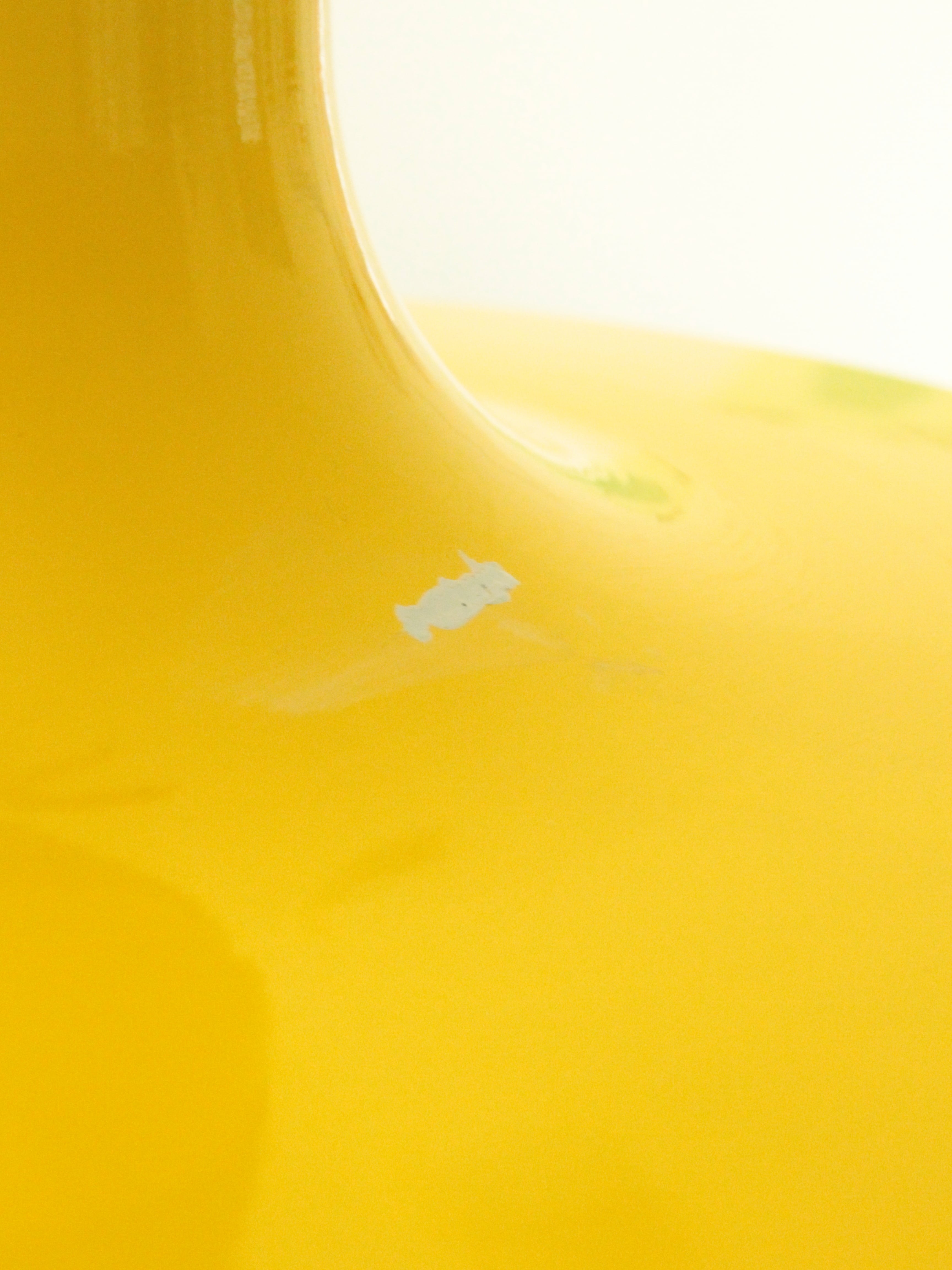 ホーローでできたイエローの本体部分の周りを囲うように、ブラックのラバーキャップで留められています。