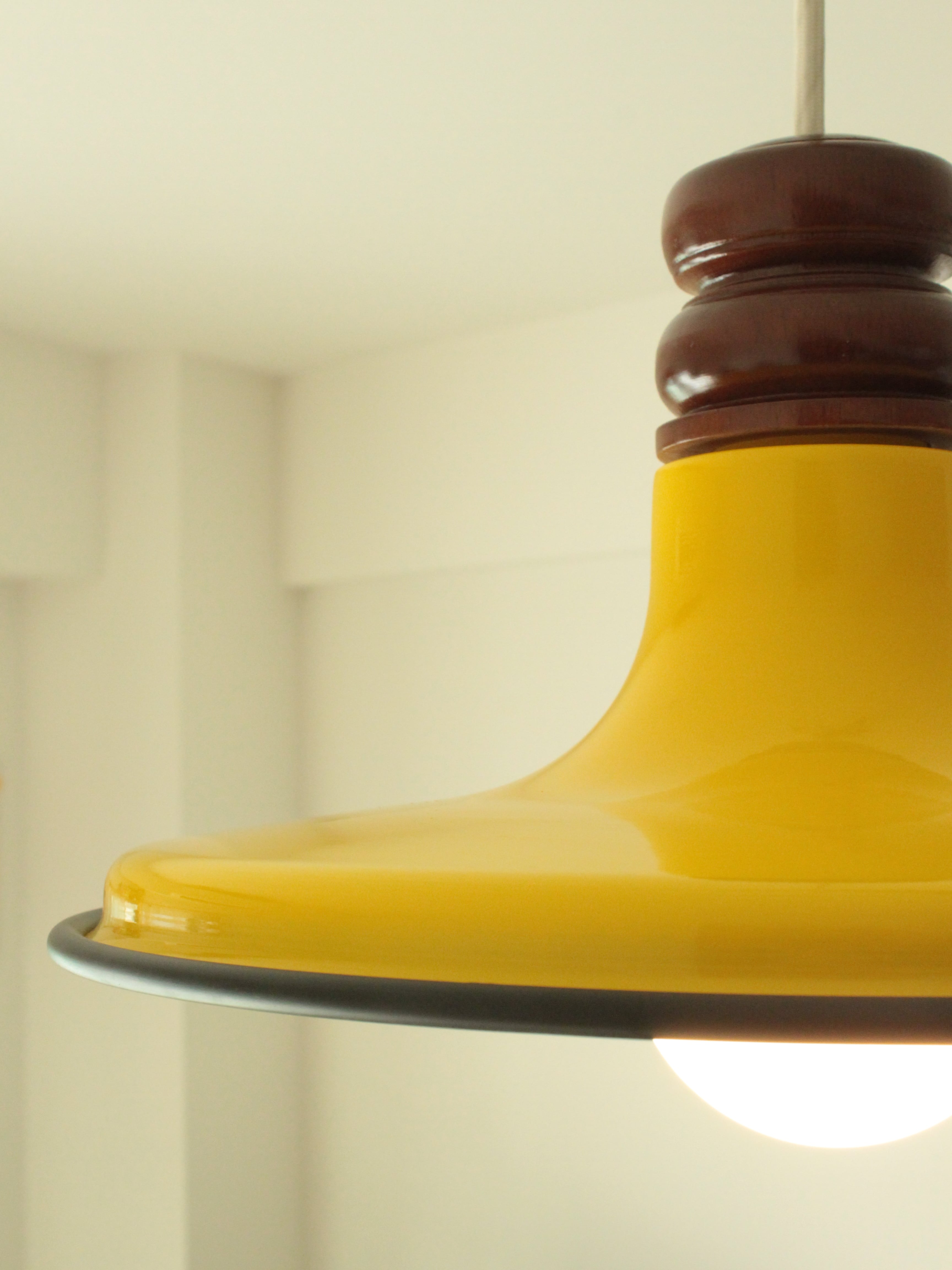扁平に広がるシェードはスペースエイジを感じさせる、かなりエッジの効いたデザインです。