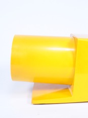 発色のいいイエローに、曲線と直線がぶつかる特徴的なデザインです。