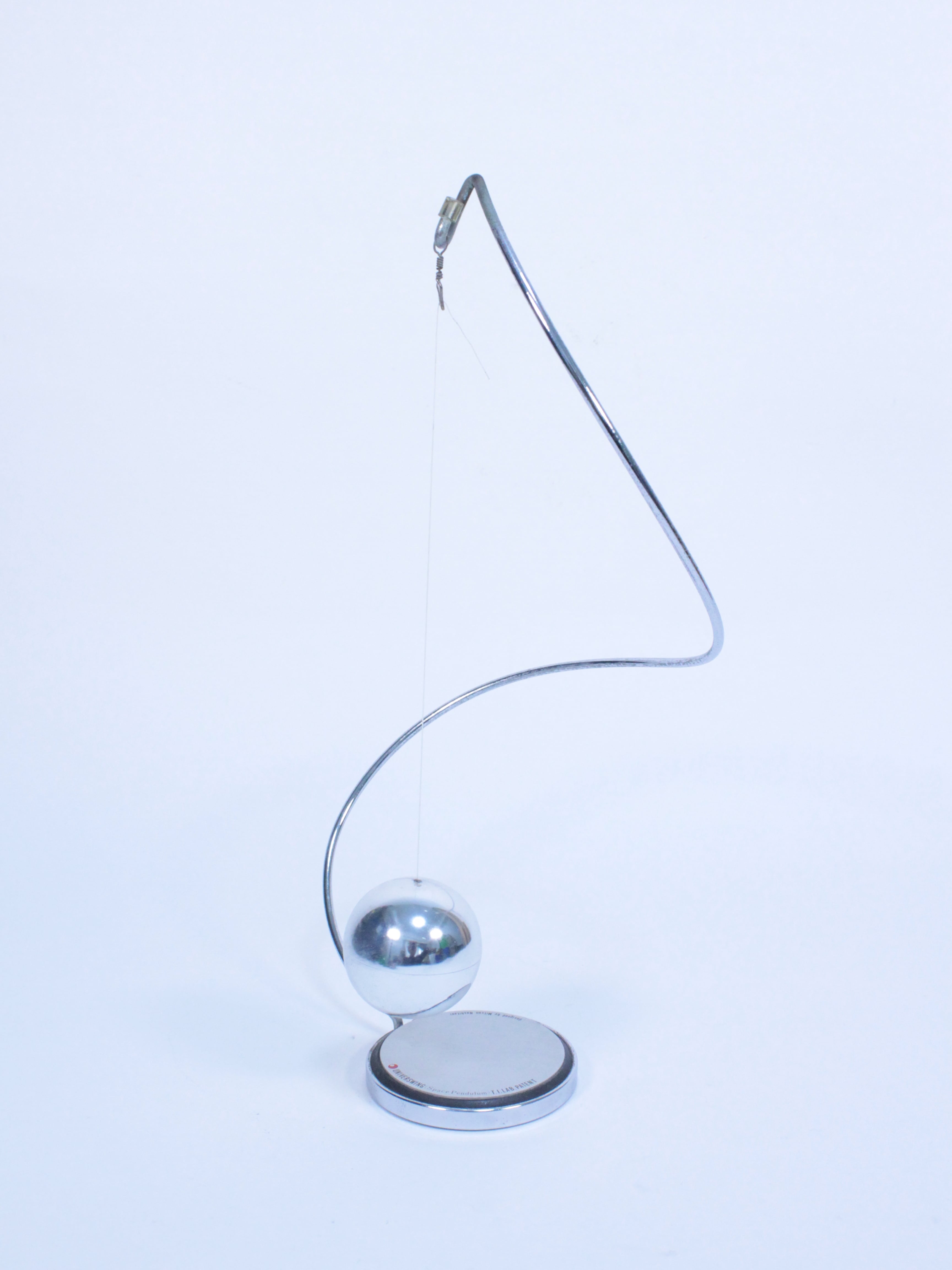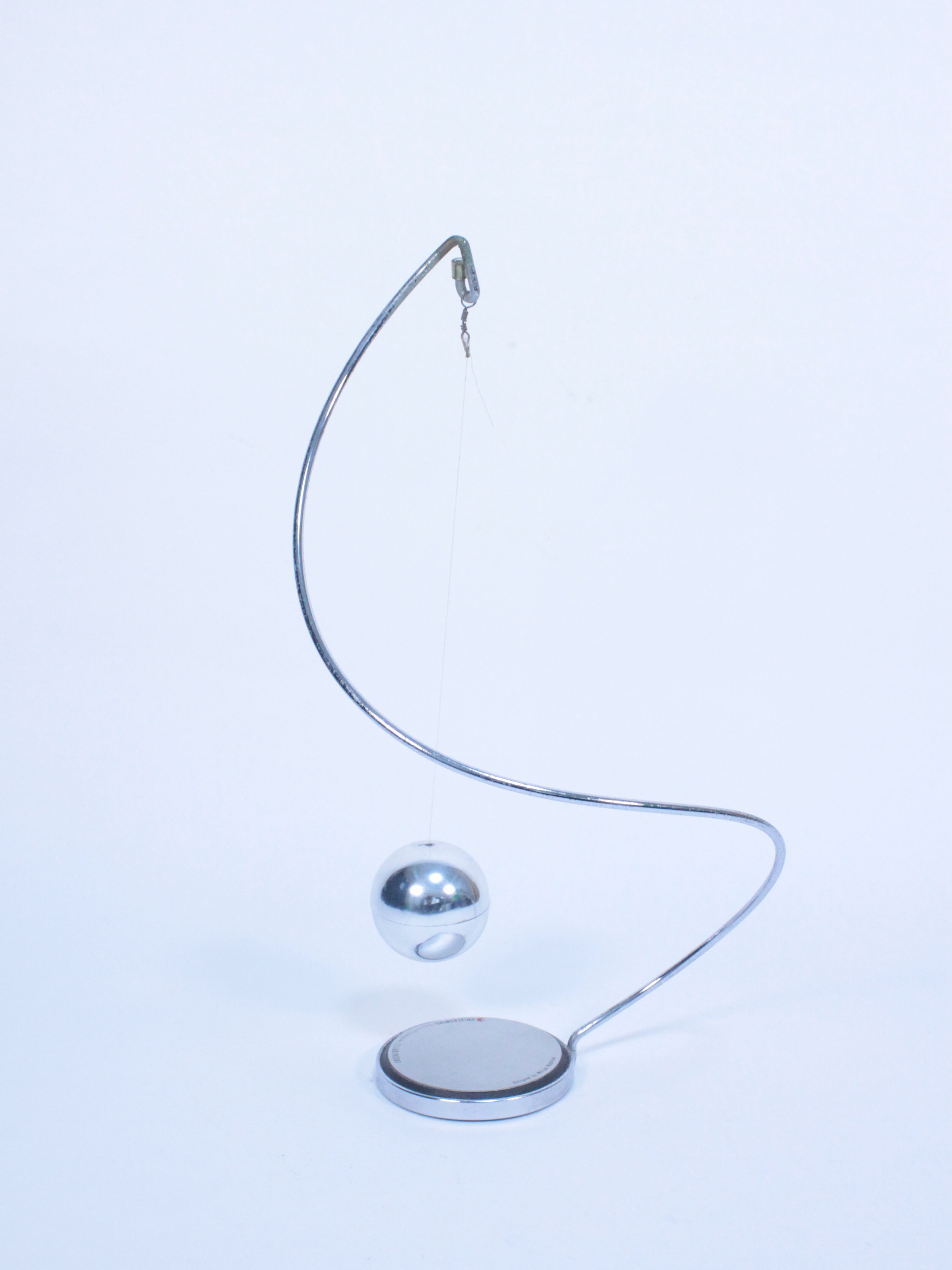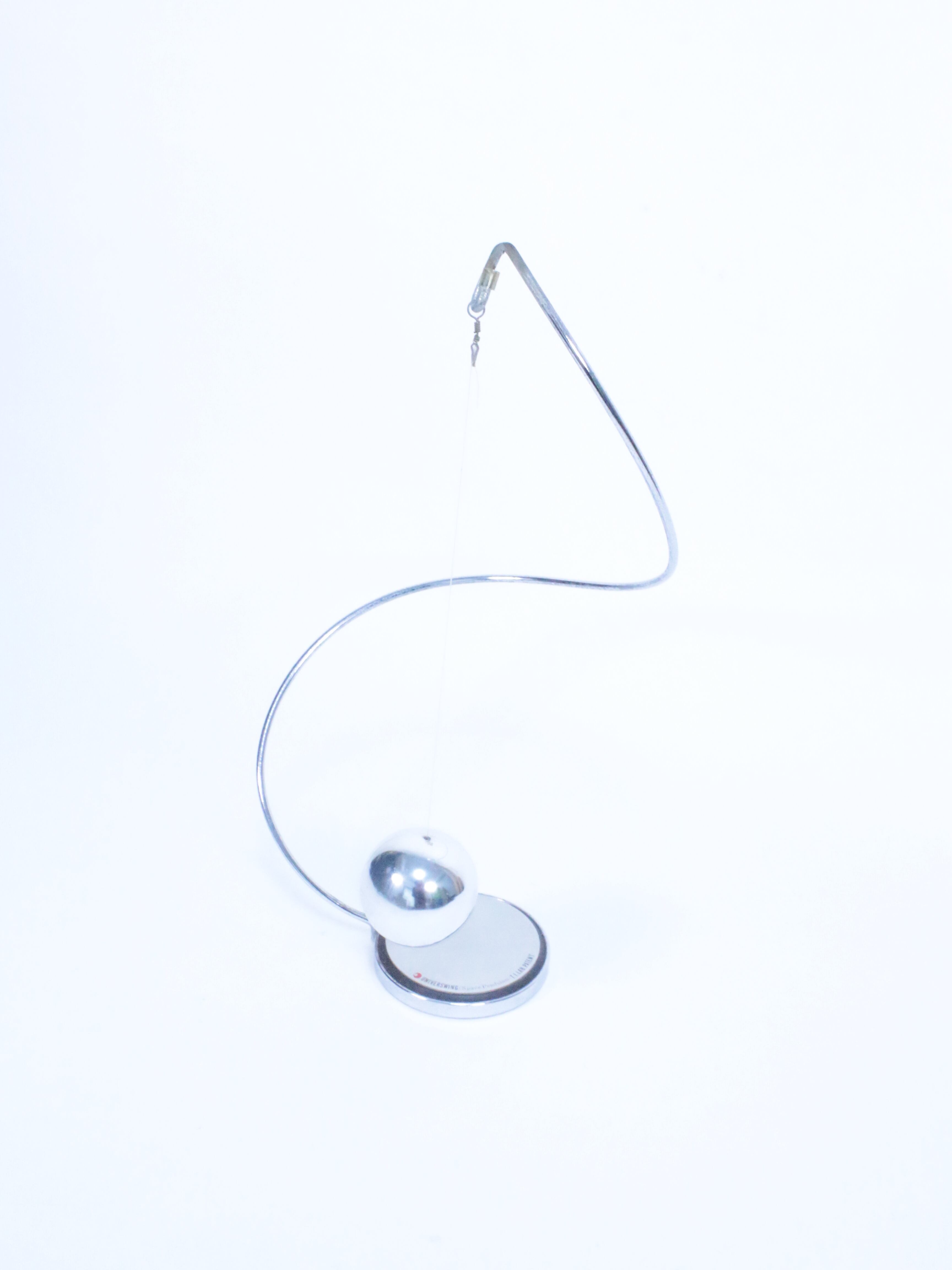 磁石とテグスのシンプルな構造ながら、ボールが不規則な動きをして見ていてとても不思議です。