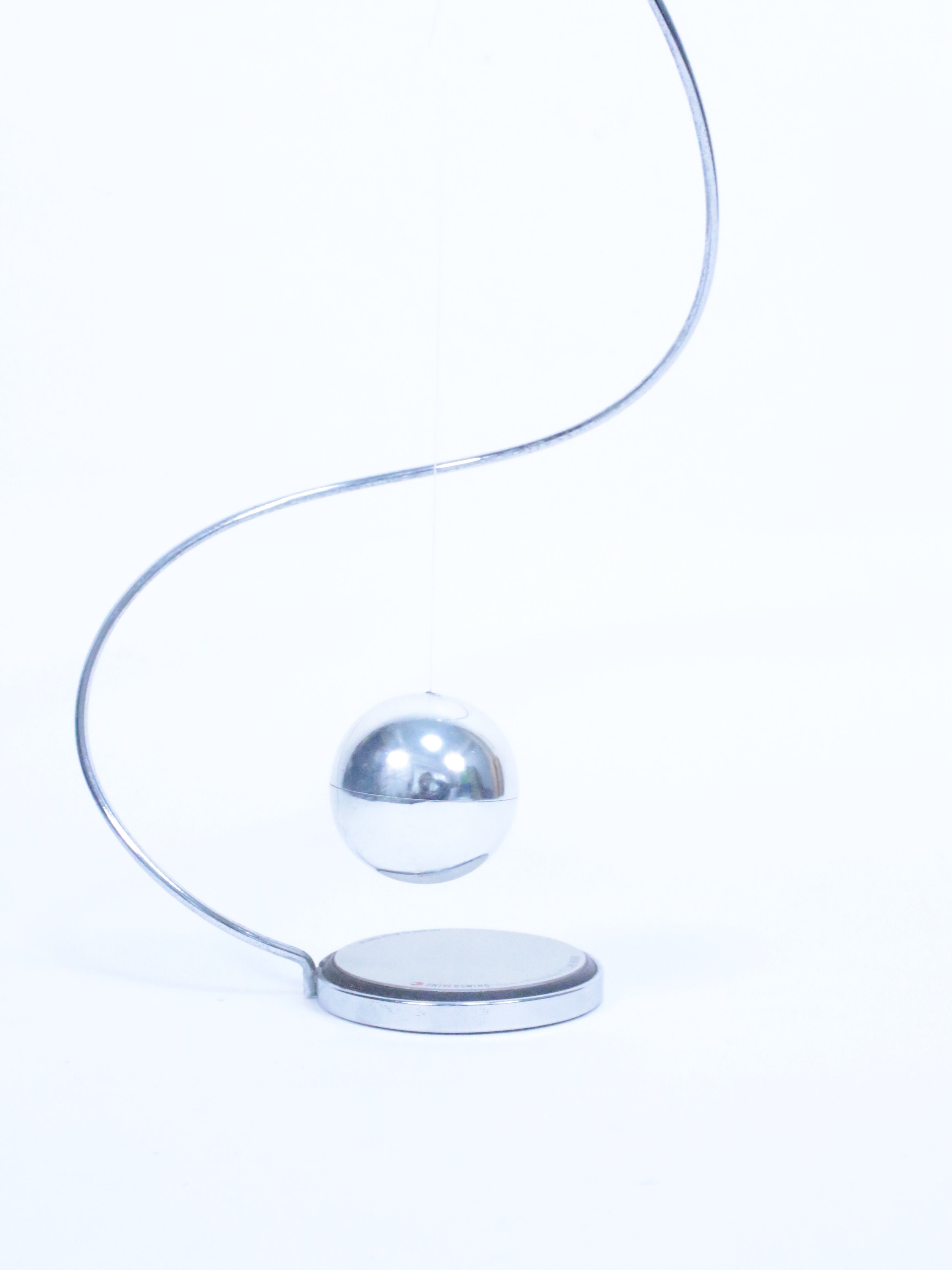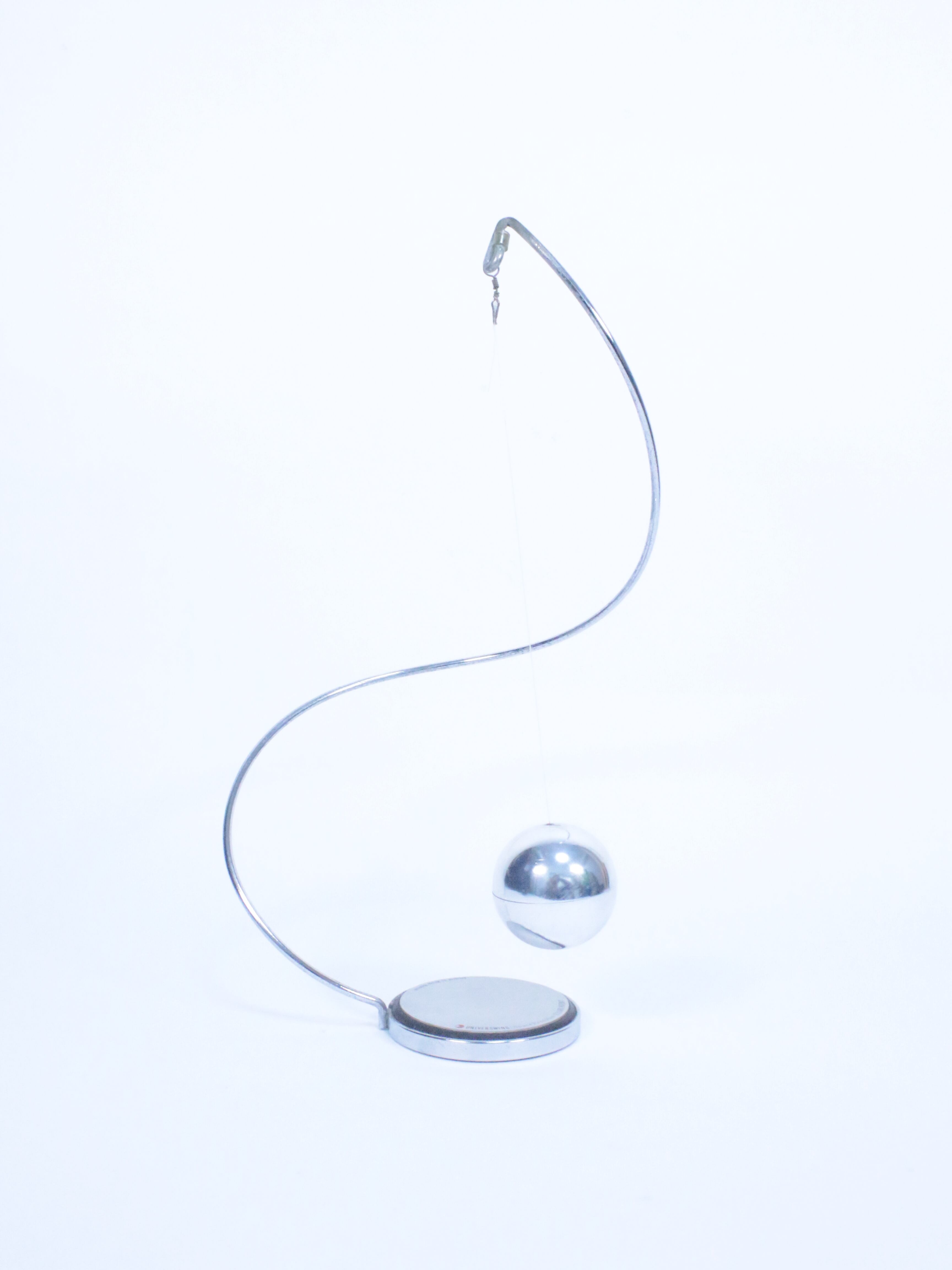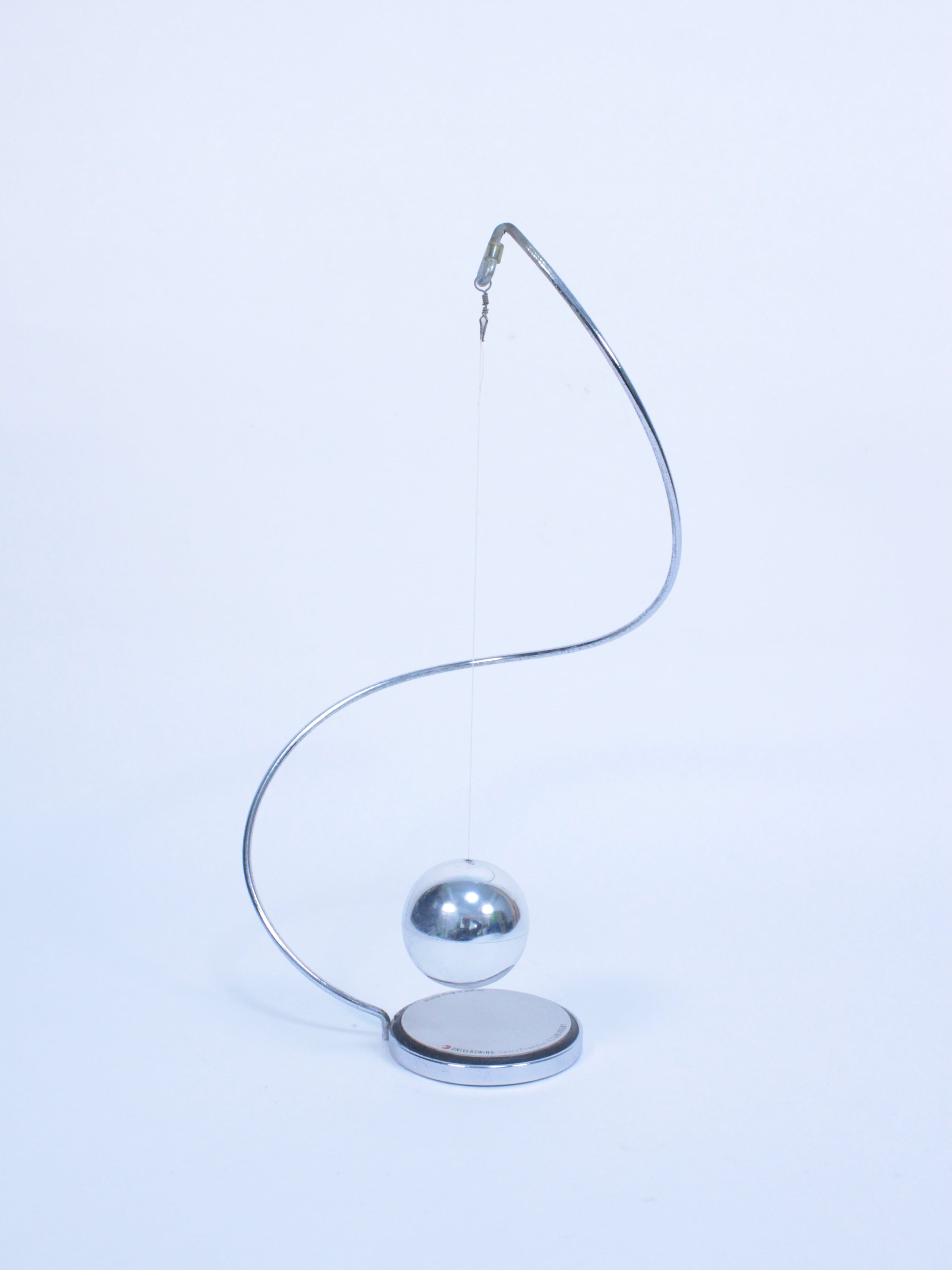 磁石とテグスのシンプルな構造ながら、ボールが不規則な動きをして見ていてとても不思議です。