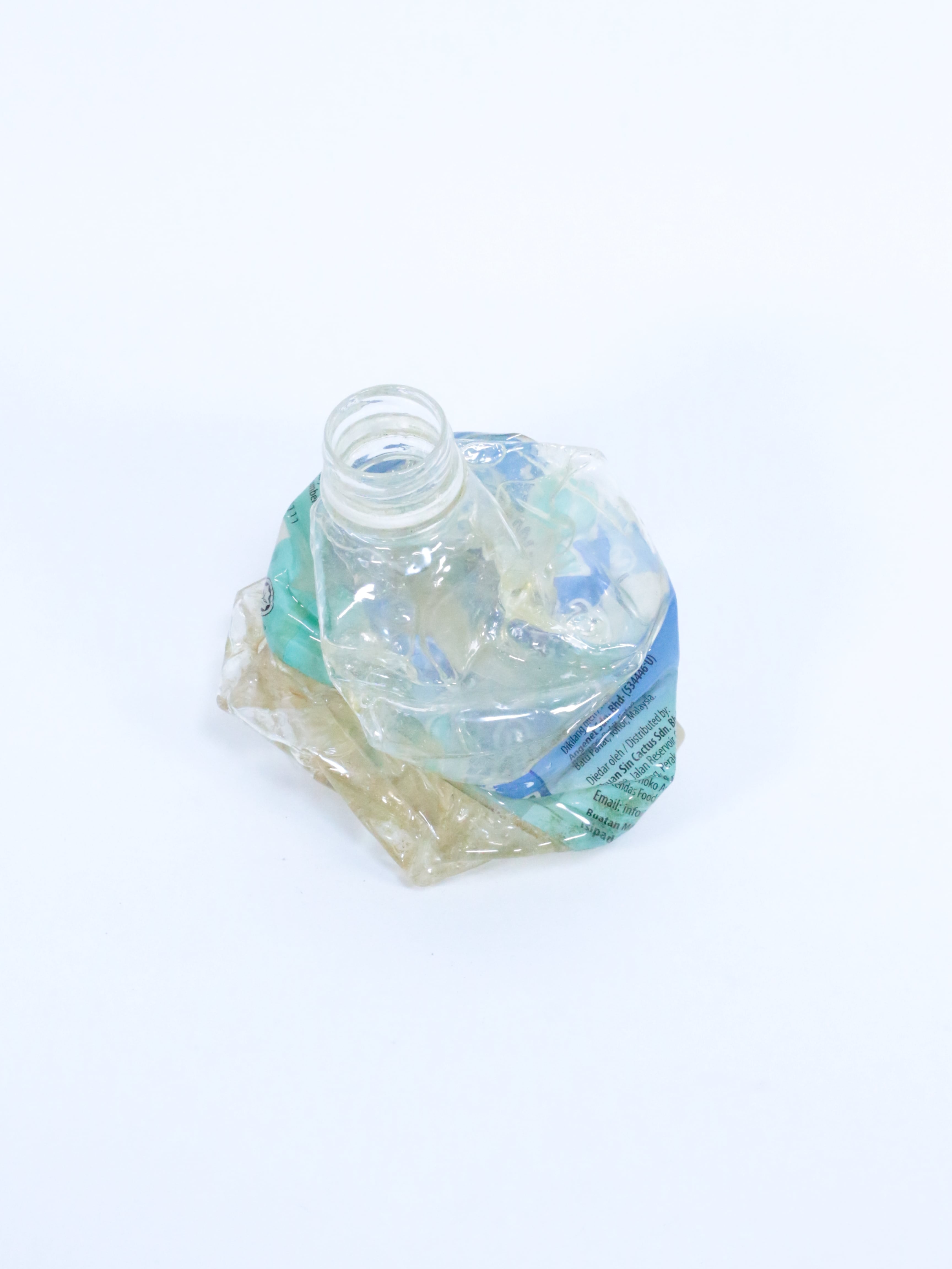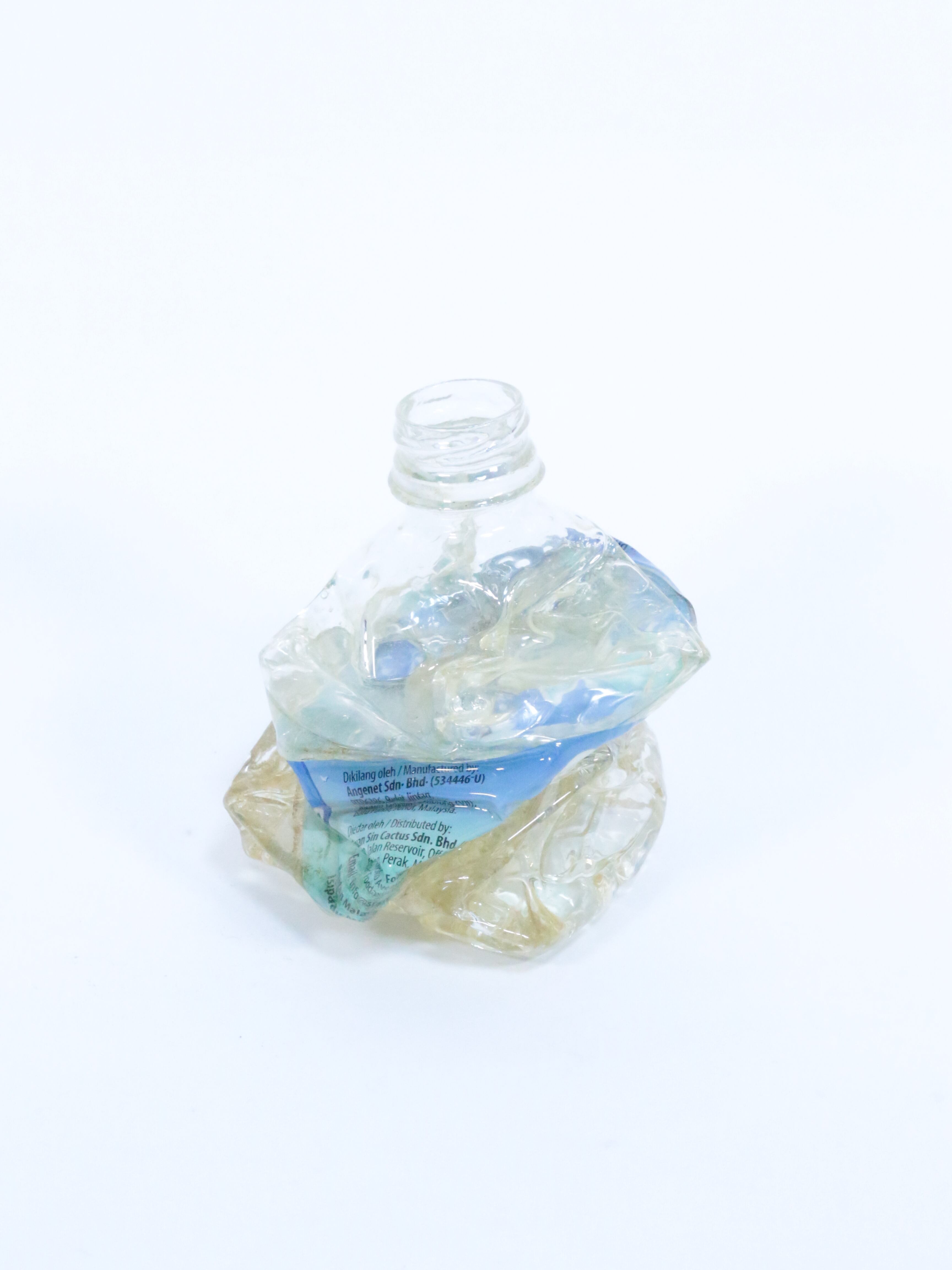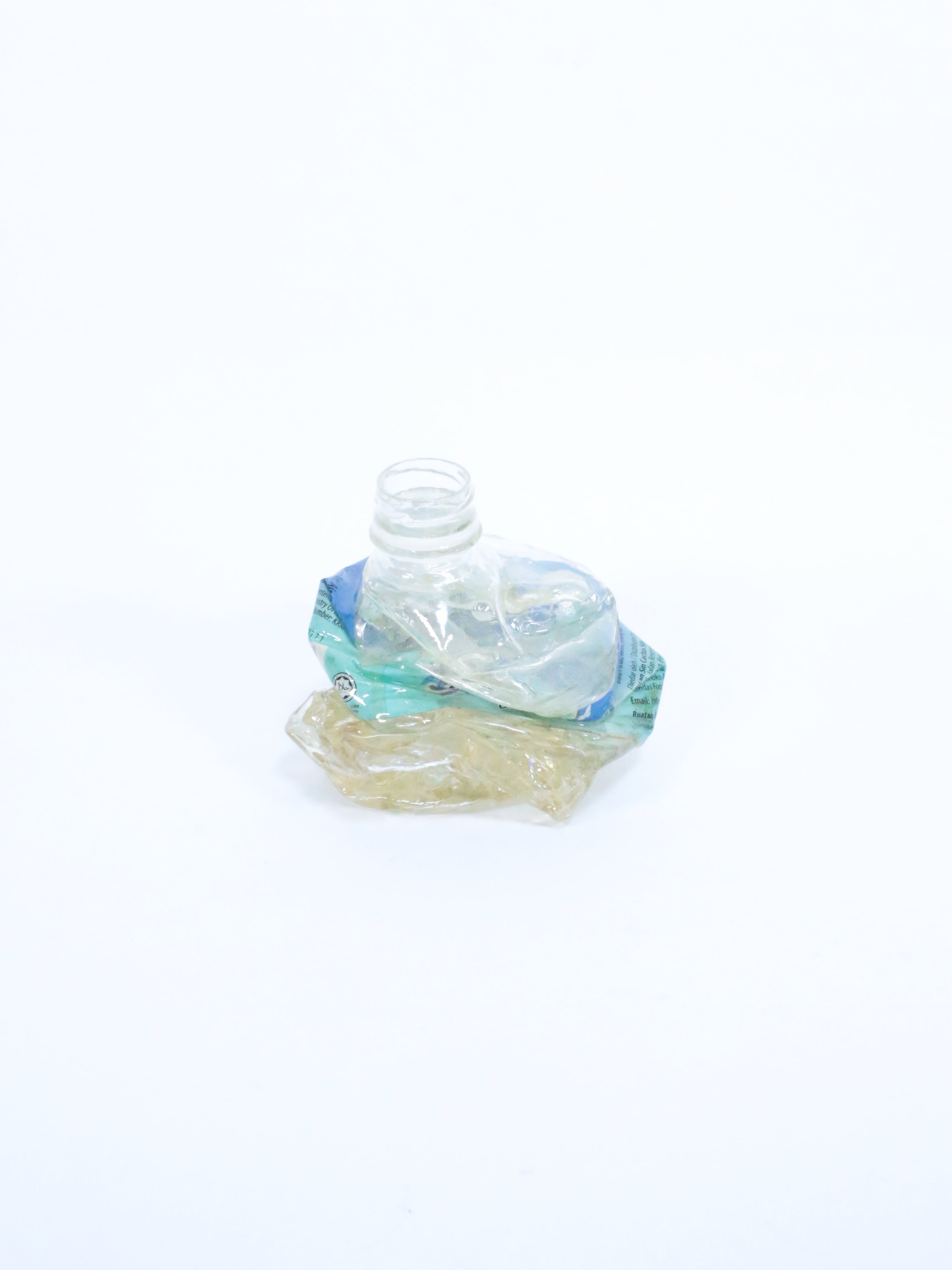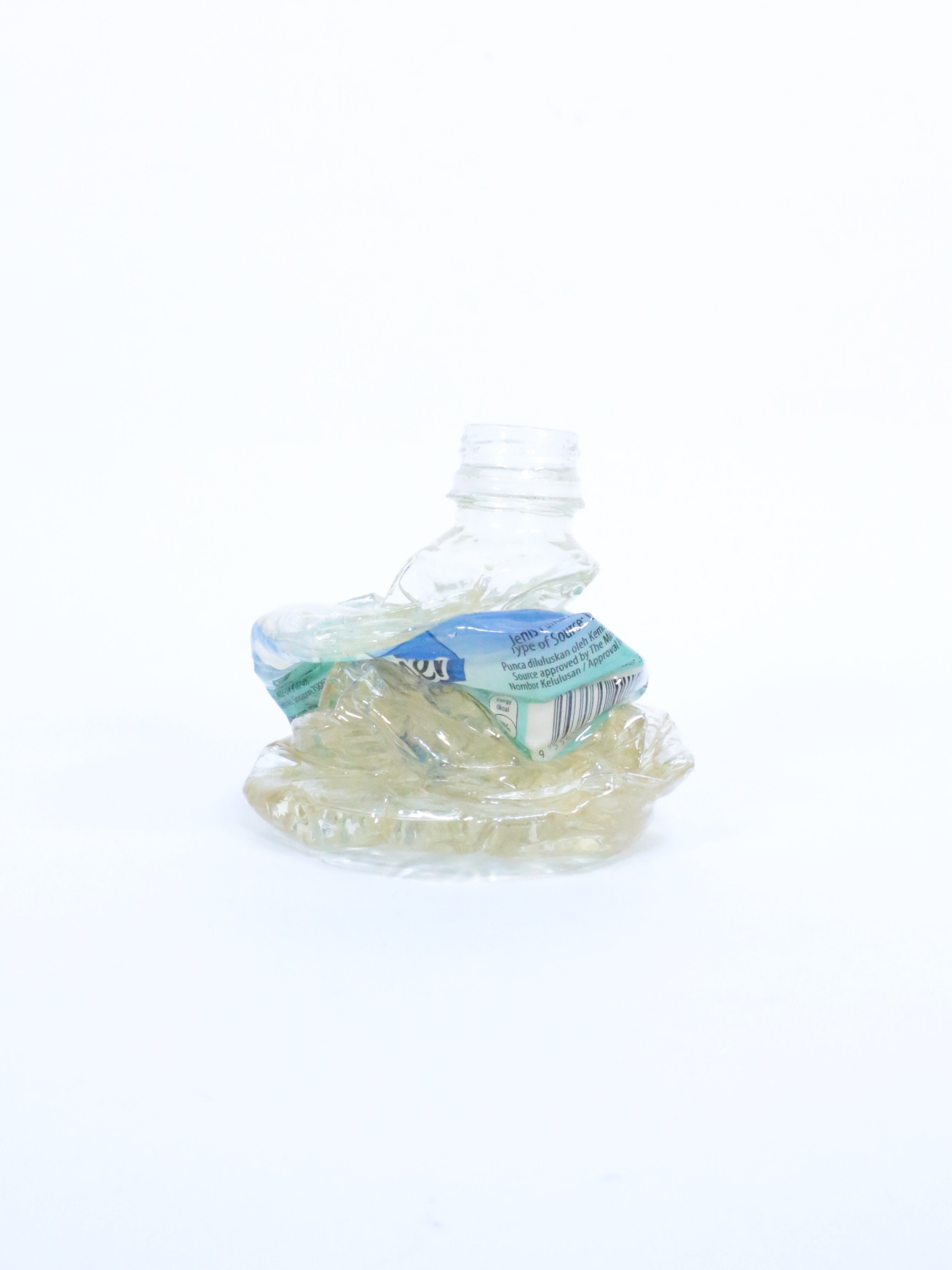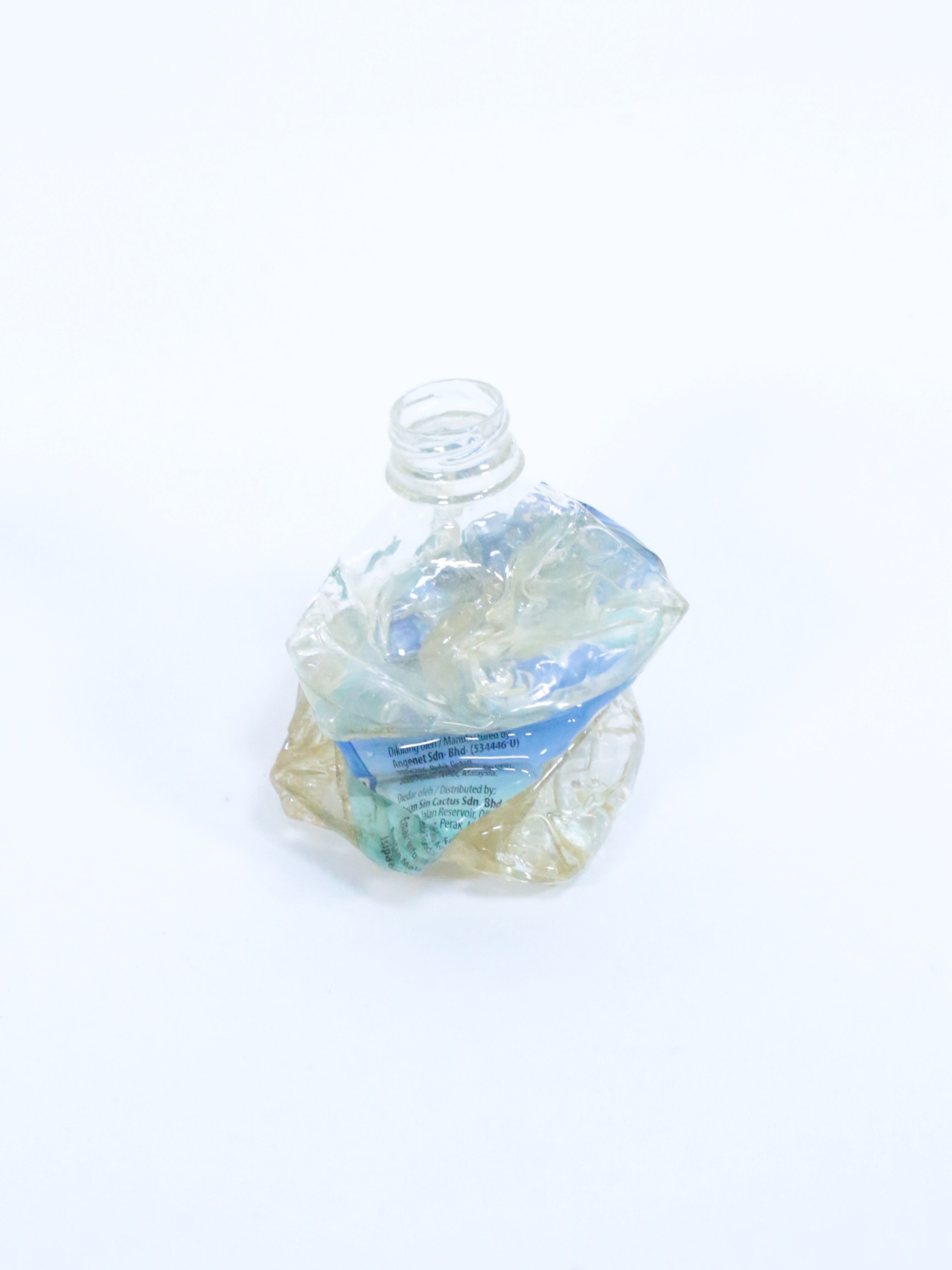潰れたペットボトルの隙間から、涼しげなカラーに蝶々、異国のグラフィックが伺えます。