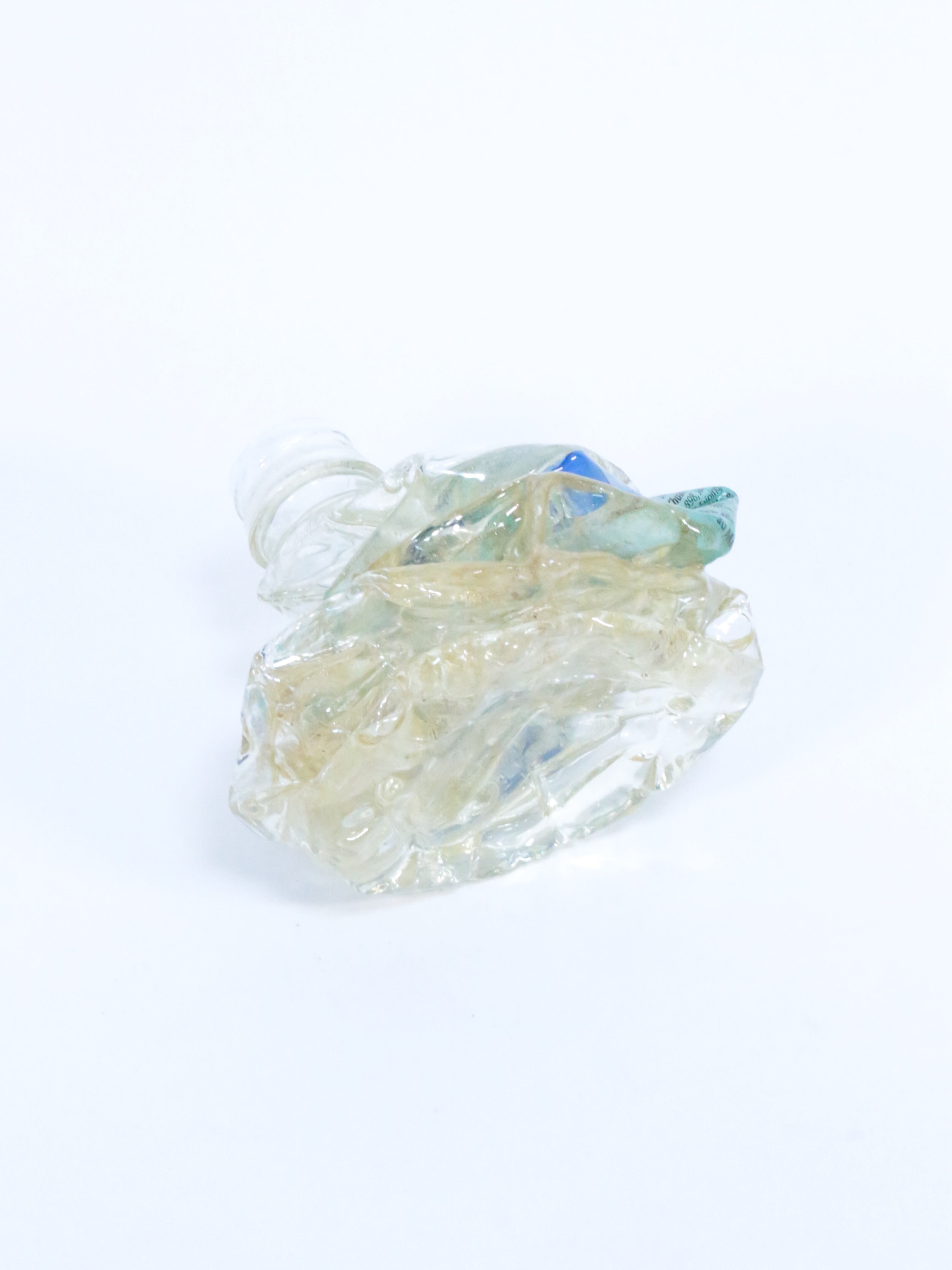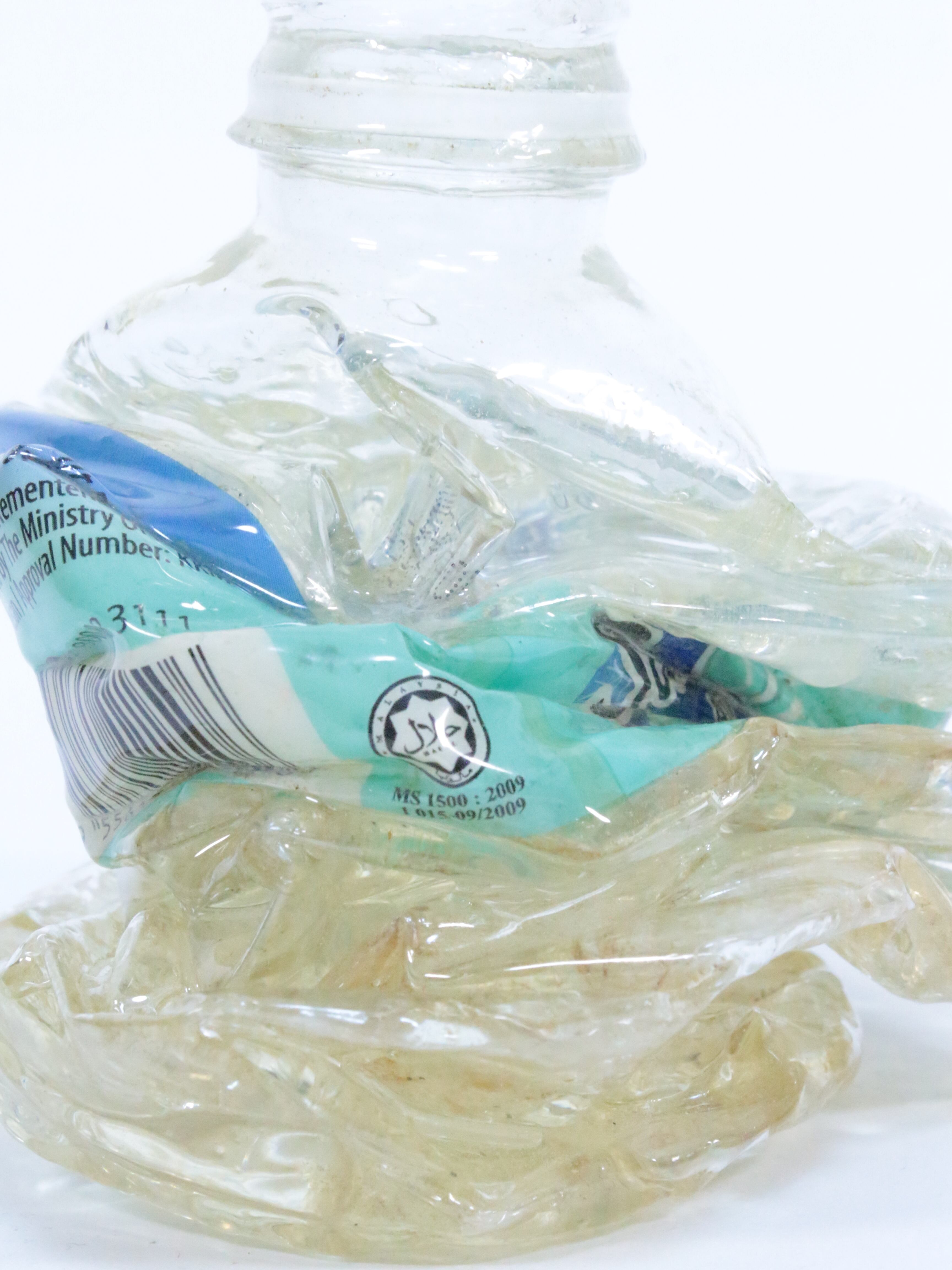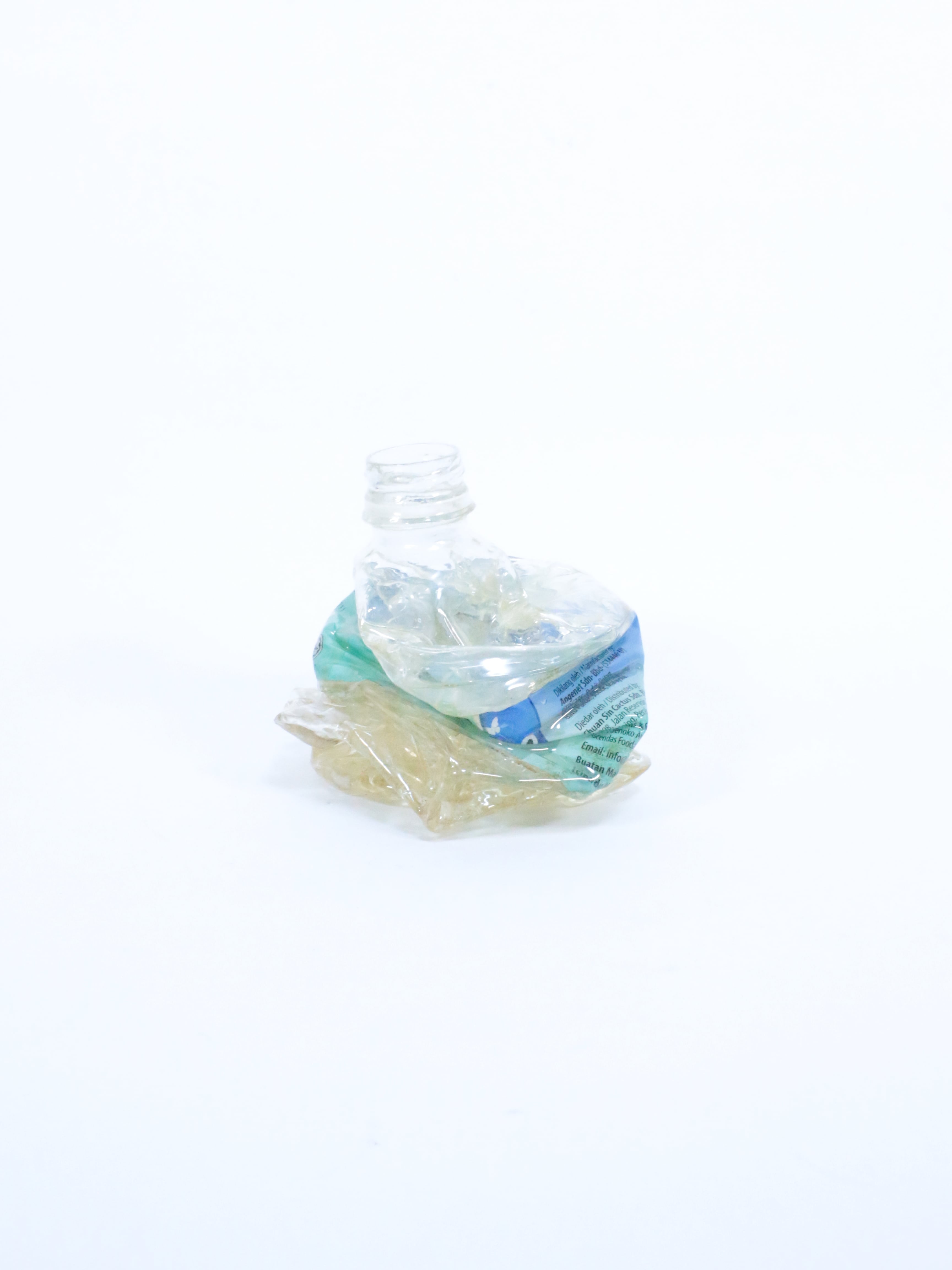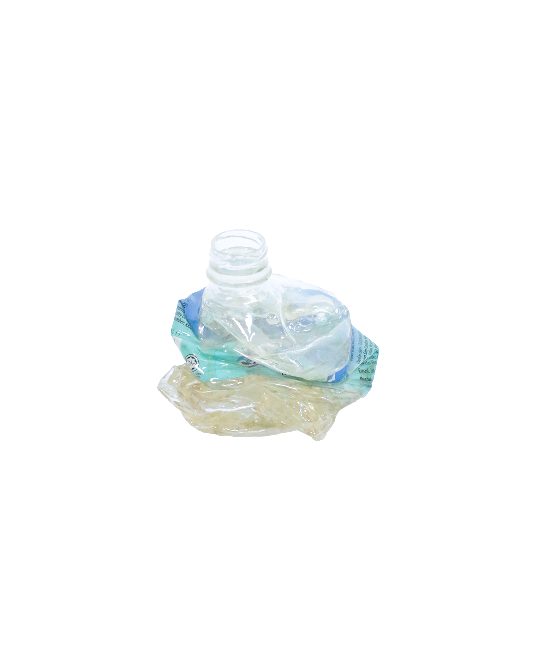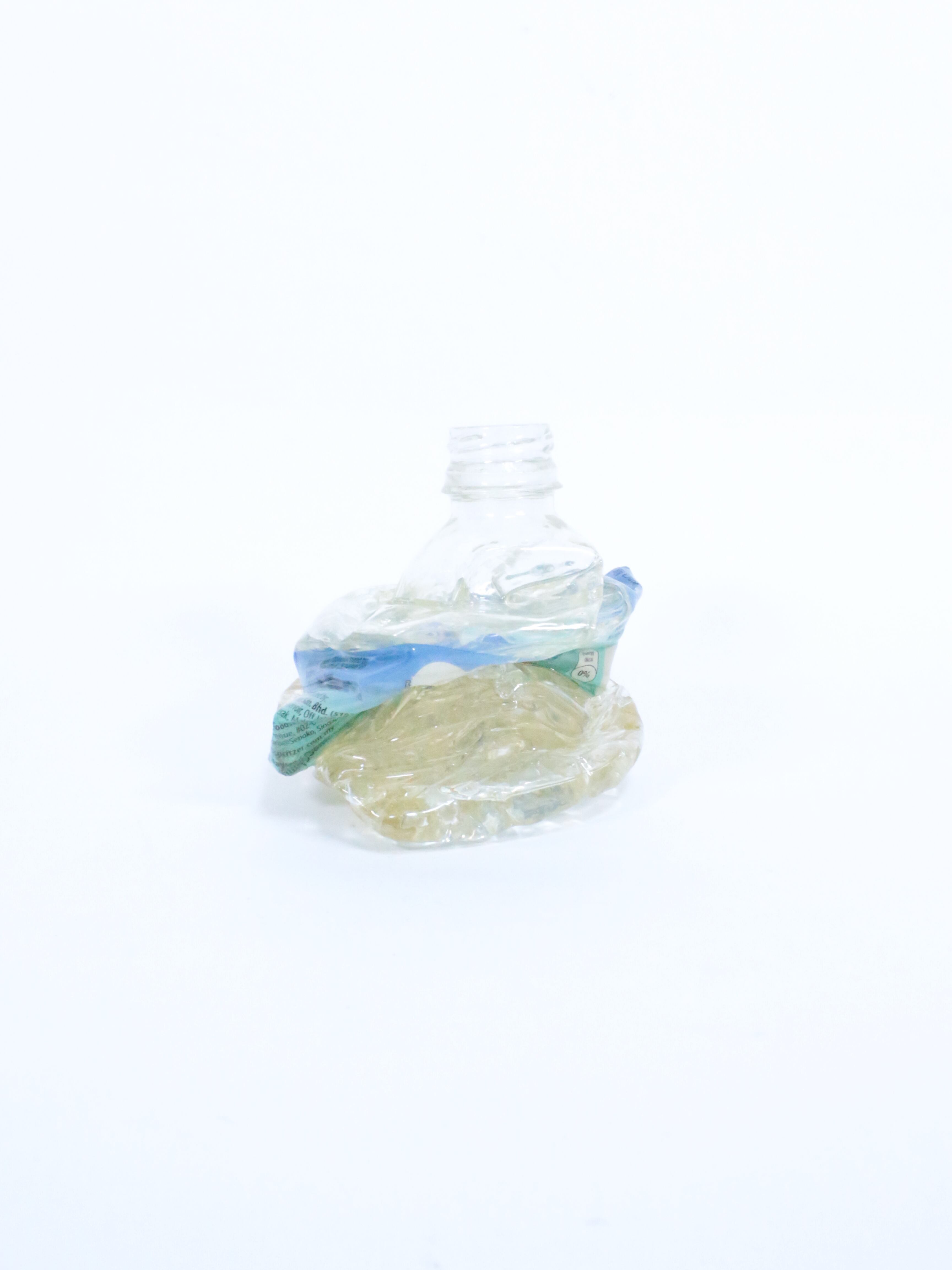 潰れたペットボトルの隙間から、涼しげなカラーに蝶々、異国のグラフィックが伺えます。