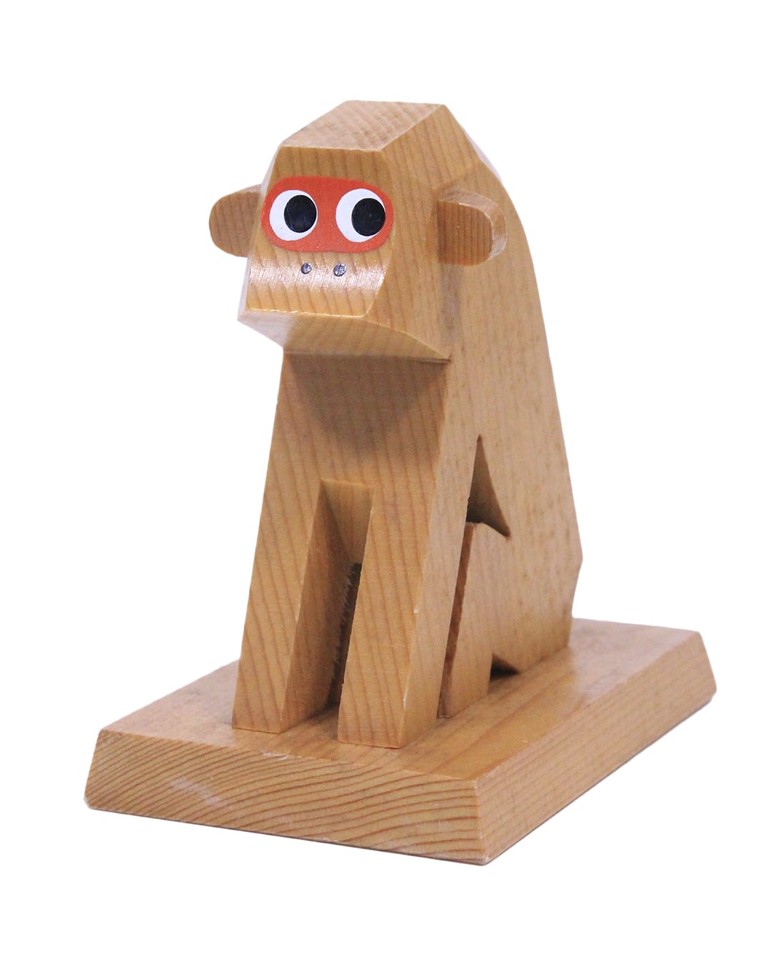 直線とシンプルな図形で作られた木製のおさるさん。